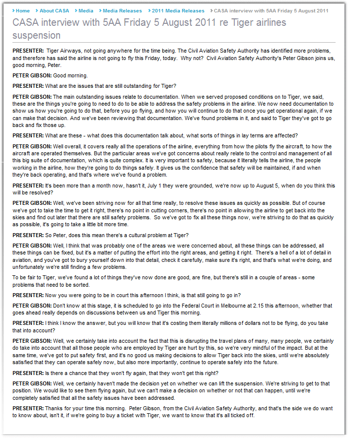 CASA'S FINAL FEDERAL COURT HEARING ON TIGER AIRWAYS GROUNDING